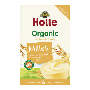 The Holle Organic Porridge range is made from whole grain cereals that are processed to a form that is easy to digest and suitable for babies. Heat and moisture are gently applied to cook the cereal starch and make it easy to absorb by infants. Using the whole grain ensures that the active nutrients of the grain are retained, along with its valuable fibres which promote digestion. Holle Organic Porridge uses all natural ingredients that are free of animal hormones, growth regulators, chemical fertilisers and insecticides. They do not contain any preservatives, colours or flavours. From 4 months* Millet is a natural whole grain and is gluten free making it ideal for a baby's first cereal. Millet has been used as a staple food for centuries around the world.