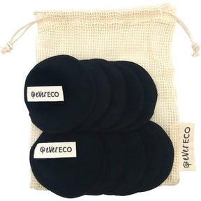 Ever Eco Reusable Bamboo Facial Pads Black With Cotton Wash Bag 10