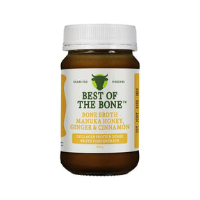 Experience the powerful benefits of Best of the Bone Bone Broth Concentrate with Manuka Honey, Ginger, and Cinnamon. Crafted from 100% grass-fed, Australian and New Zealand beef bones, this nutrient-rich broth is slow-cooked for over 48 hours to extract maximum nutrients. Enriched with the natural sweetness of Manuka honey, warming ginger, and aromatic cinnamon, it’s your go-to for gut health, joint support, and overall wellness.