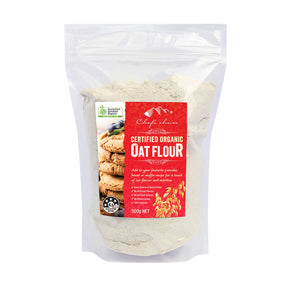 Chef’s Choice Oat Flour 500g is made by finely milling whole oats. This versatile flour can be mixed with other flours to add a gentle nutty flavour and extra nutrition to your baking recipes. Ideal for biscuits, cookies, breads, pancakes and more.