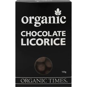 Organic Times Milk Chocolate & Licorice 150 g blends soft, chewy organic licorice with creamy organic milk chocolate for a nostalgic, indulgent treat. Made with certified-organic ingredients and fair-trade chocolate, it’s the perfect balance of spice, sweetness, and smooth cocoa.