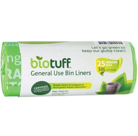 Biotuff General Use Bin Liners Medium 30L Bags x25