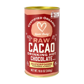 The Purest and Most Nutritious Hot Chocolate Experience. Lovin’ Body presents a smooth, delicious drinking chocolate that doubles as a functional superfood blend. Enjoy the amazing flavour of raw organic cacao combined with the powerful health benefits of organic maca, turmeric, and cinnamon. Perfect for a satisfying treat or a delightful daily wellness boost.