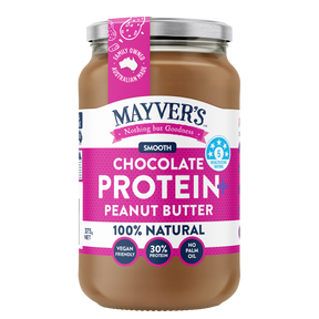 Mayver's Peanut Butter Protein PlusChoc 375g is the ultimate high-protein spread that tastes like a treat! Combining natural roasted peanuts, pea protein, and rich cocoa, this blend delivers a decadent chocolate flavour while maintaining a high protein content. It is the perfect way to satisfy cravings and fuel your body after a workout, free from palm oil and artificial additives. Reference the brand’s website here for accurate product information.