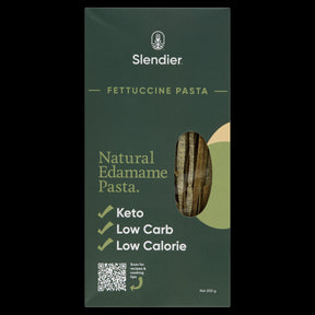 Slendier Organic Edamame Bean Fettuccine is perfect for a low calorie/ low carb diet. Slendier Edamame Bean Fettuccine keeps you fuller for longer. In every serve, you'll find high amounts of fibre that help digestion and help fight cravings. Made from organic baby soybeans, picked while they are still in their pods, these flat ribbons of fettuccine make a fabulous foundation for the most delectable dishes. They cook within minutes to 'al dente' perfection for a pasta dish with 25 per cent fewer carbs than a wheat-based fettuccine. For a fast and fat-busting meal, combine with one of Slander's pasta sauces. Slendier is gluten-free, fat-free, sugar-free, dairy-free and vegan. Be assured feeding your family Slendier is not only delicious but good for you.