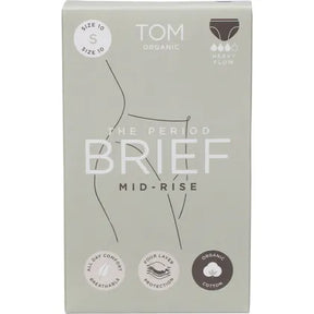 TOM Organic The Period Brief Mid Rise Black is your comfortable, sustainable, and reliable solution for managing medium to heavy flows. These sleek mid-rise briefs look and feel like regular underwear but feature a unique, tried-and-tested 4-layer leak-free system. Made with breathable organic cotton, they wick away moisture and absorb up to three regular tampons’ worth of fluid, keeping you dry and confident whether worn overnight, on heavy flow days, or as extra backup protection.