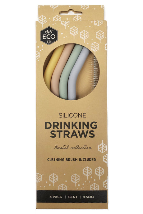 Ever Eco Silicone Straws Straight - 4 Pack + Brush