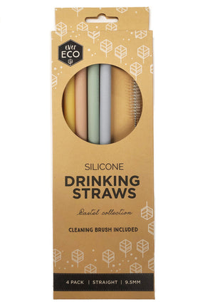 Ever Eco Silicone Straws Straight - 4 Pack + Brush