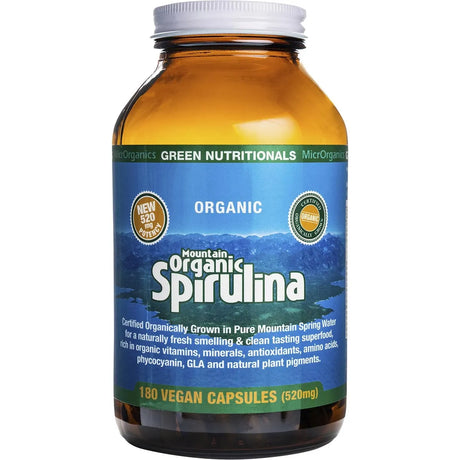 Green Nutritionals Mountain Organic Spirulina Capsules (520mg) - 180 Caps