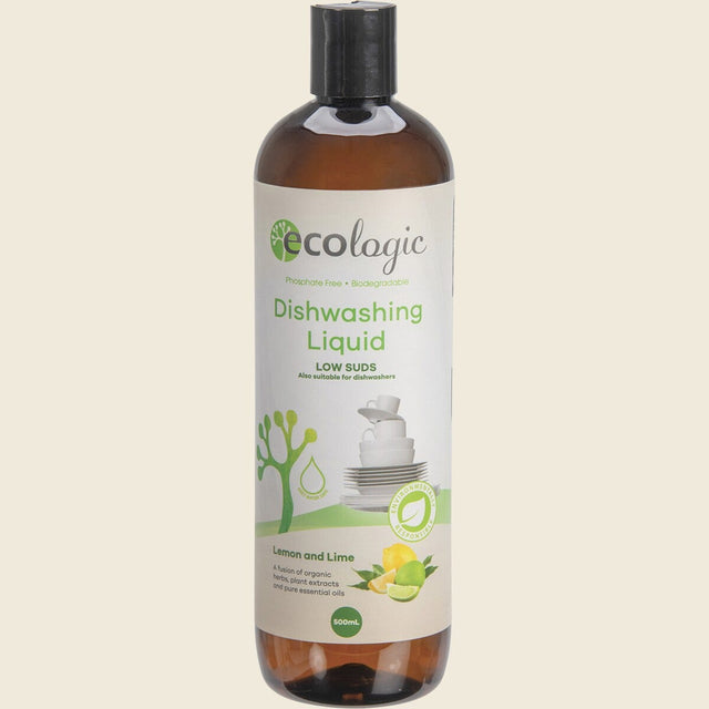 Ecologic Dishwash Liquid Lemon & Lime 500ml cuts through grease and grime to leave dishes and glassware sparkling—without harsh chemicals that can pollute waterways. Gentle on delicate china and won’t discolour glasses, this low-suds, plant-based formula also cares for your hands with organic Aloe Vera, Chlorella, and Papaya extracts. Suitable for handwashing and can be used in dishwashers. Completely biodegradable and packaged in a recyclable bottle.