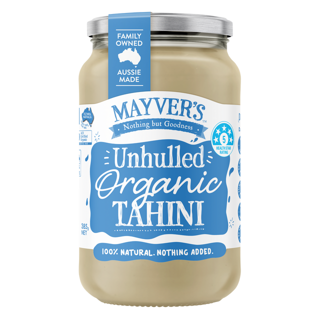Mayver's natural Organic Unhulled Tahini is a source of gluten-free fibre and dairy-free calcium. Made from just pure certified organic sesame seeds that have been lightly toasted. Slightly stronger in flavour it is naturally cholesterol, gluten and dairy-free and a healthy alternative for butter or margarine.