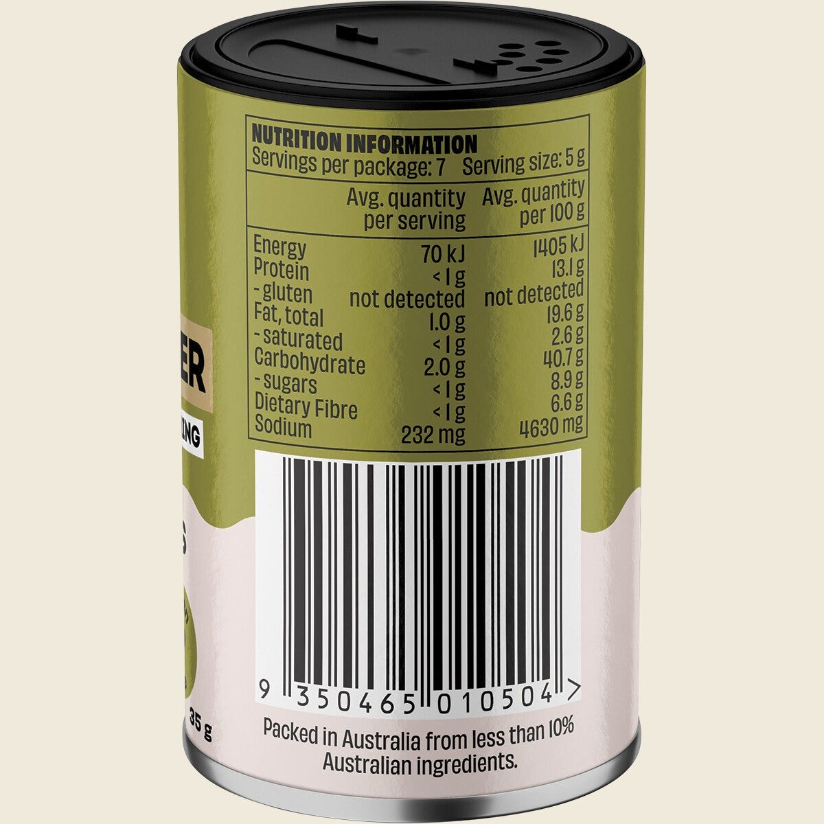 Sesame Seeds, Dried Seaweed, Garlic, Onion, Australian Sea Salt, Coconut Sugar, Soy Sauce Powder, Chilli.
