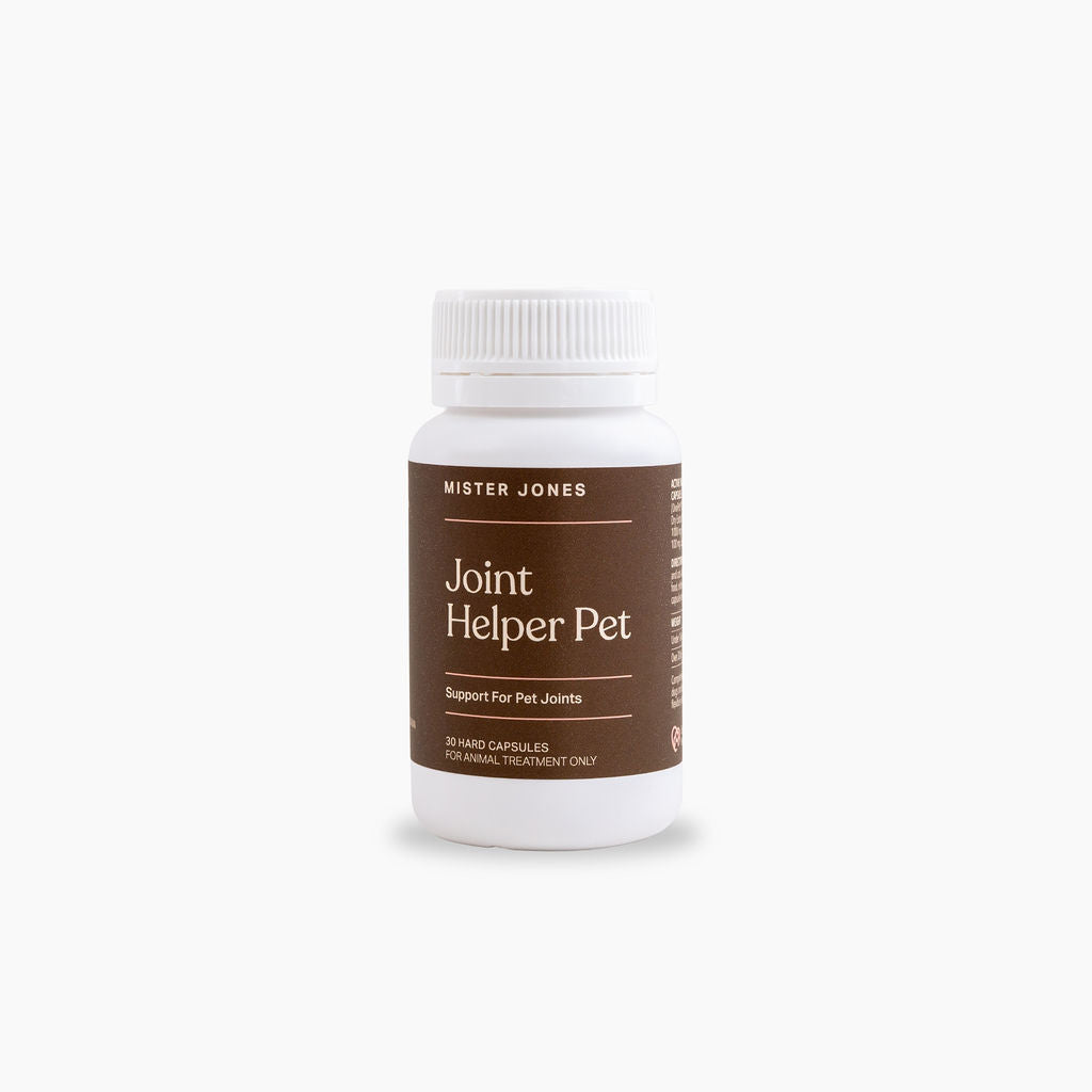 Mister Jones Joint Helper – Pet is a natural joint support supplement for adult and senior dogs and cats. Each capsule delivers eggshell membrane, curcumin and rosehip to help ease everyday stiffness, support comfortable movement, and keep your best mate more active.