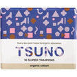 Tsuno tampons are made from certified organic cotton individually wrapped in biodegradable sleeves, and finally packaged in recyclable cardboard boxes.
