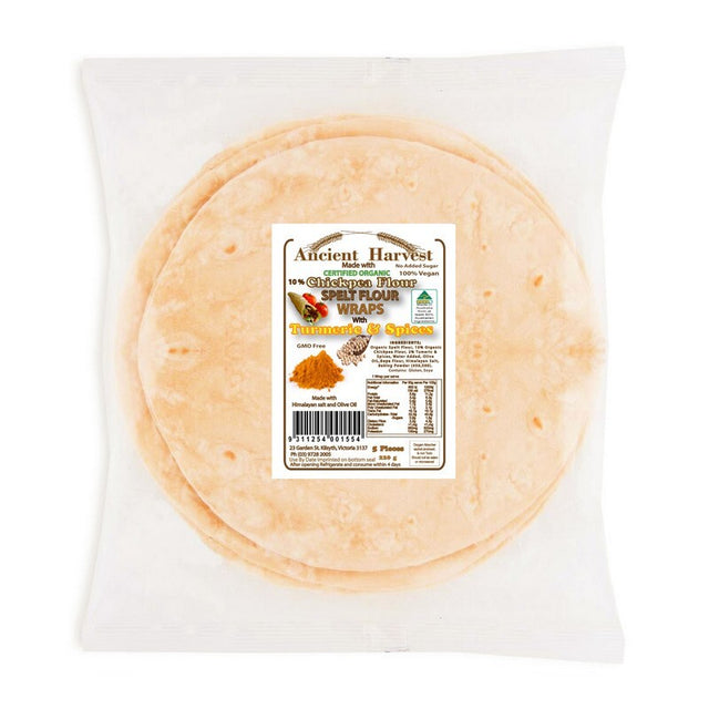 Ancient Harvest Organic Spelt & Chick Pea with Turmeric Wraps 220g