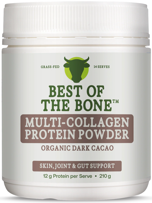 Elevate your nutrition with Best of the Bone Multi-Collagen Protein Powder in Raw Organic Cacao. This 210g container offers a premium blend of organic cacao and multi-collagen proteins, designed to support your health and wellness with a delicious and nutritious boost. Perfect for health enthusiasts and anyone seeking a high-quality, organic protein supplement.