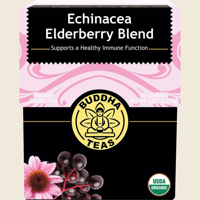 Buddha Teas Organic Herbal Tea Bags Echinacea Elderberry Blend 18pk