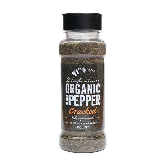 Chef’s Choice Certified Organic Cracked Black Pepper is freshly cracked from premium organic black peppercorns, delivering a bold, aromatic flavour with a slightly coarse texture. Packed in a handy sprinkler jar, it’s ideal for everyday seasoning in the kitchen or at the table.