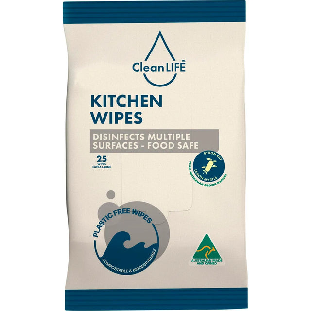 CleanLife Kitchen Plastic Free Wipes are the convenient, food-safe way to tackle everyday kitchen messes. These extra large, super tough textured wipes are specially designed to lift and remove grease, grime, and food residue from benchtops, stovetops, appliances and more.