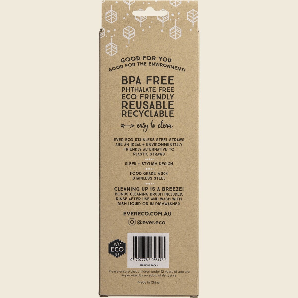 Ever Eco Stainless Steel Straws Straight - 4Pack+Brush