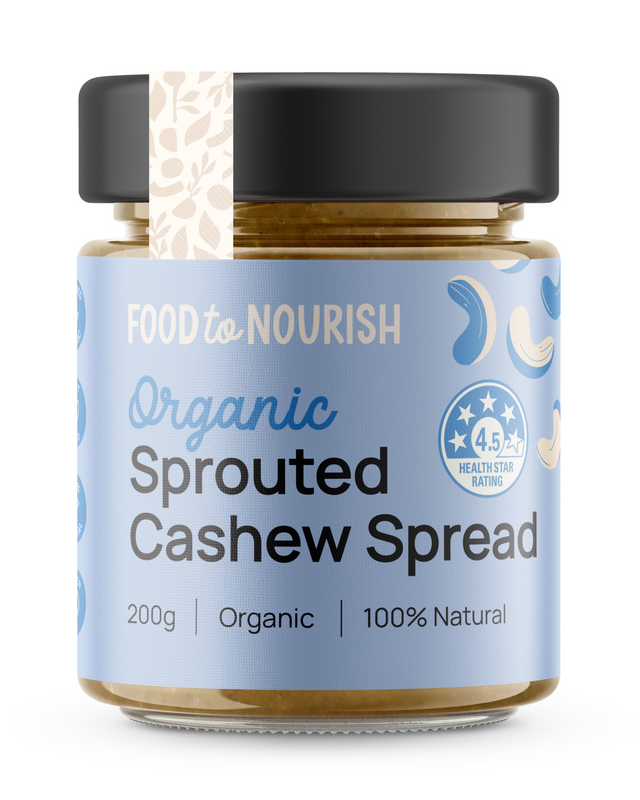 Food to Nourish Organic Sprouted Cashew Spread 200g is a smooth and creamy nut butter made from just one ingredient – 100% organic sprouted cashews. Sprouting helps improve nutrient availability and digestibility, while retaining the deliciously rich cashew flavour.