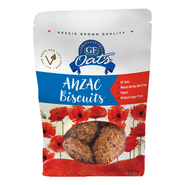 - Enjoy a delicious snack that also makes a difference. Experience the first Anzac Biscuit on the Australian market made with GF Oats and feel good knowing each bite supports a noble cause.