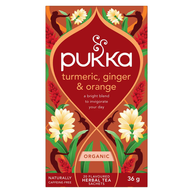 Ignite your senses and embrace vitality with Pukka’s invigorating Turmeric, Ginger & Orange herbal tea blend.