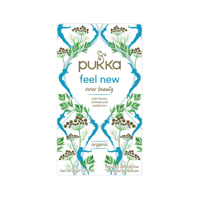 Feel fresh, feel new, with Pukka Organic Feel New Tea. Reawaken your senses and embrace each day with a cup of organic delight!