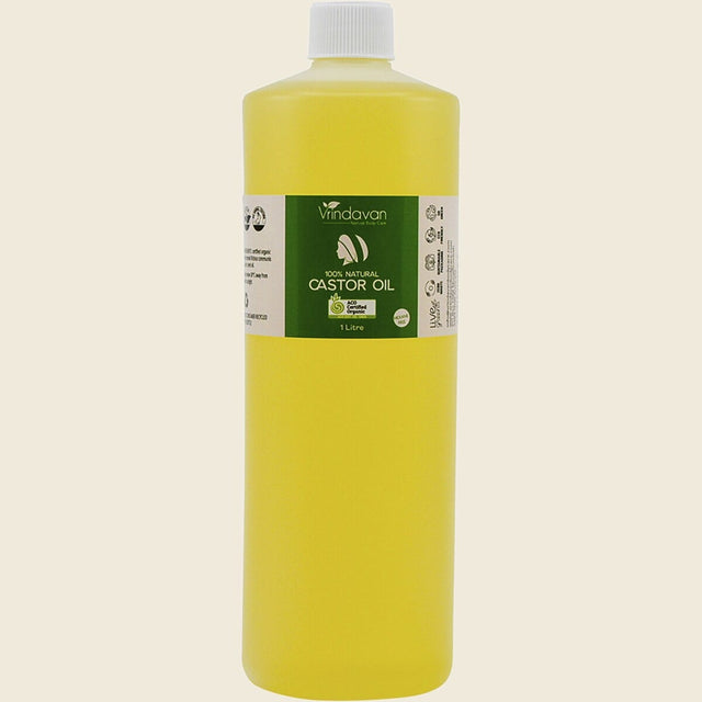 Vrindavan Castor Oil 100% Natural - 1L offers a premium, versatile oil for skincare, haircare, and wellness. Enjoy the natural benefits and purity of this high-quality castor oil in a convenient, large-size bottle.